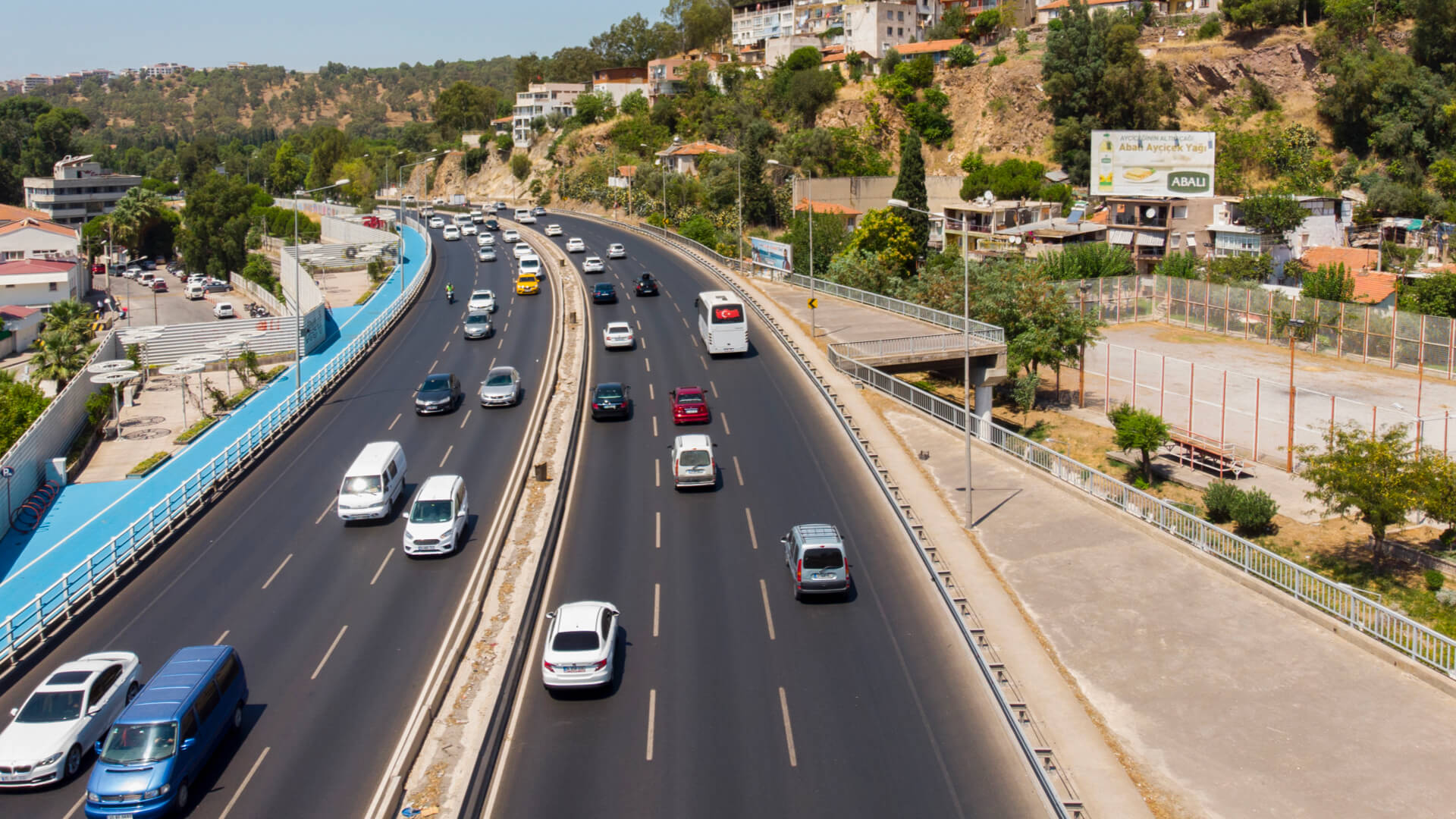 Altın yol üzerinde Karşıyaka güzergâhı istikametinde bulunan yoğun araç trafiğine sahip bir ünite.